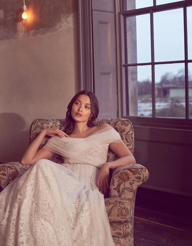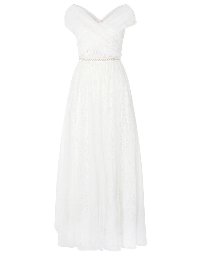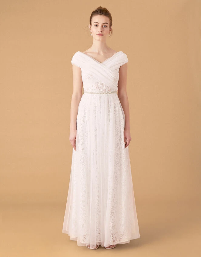 MONSOON Laurie Lace And Tulle Bardot Bridal Dress Ivory