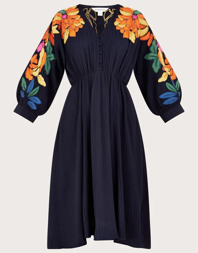 Intricately embroidered with delicate florals, this dress is a breezy dream thanks to it’s relaxed silhouette. The blouson sleeves show off the vibrant petals, with a subtle ribbed finish to the bodice and flowing skirt, offering a feminine finish.