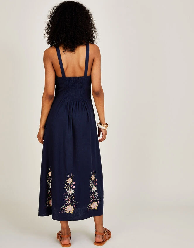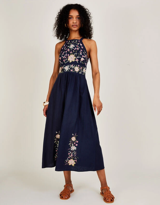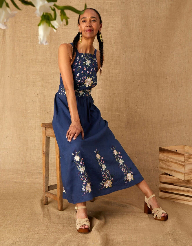 In need of something for the weekend barbeque? Opt for Leah, fabricated in a light and breezy linen blend. Her flower embroidery to the skirt and bodice will brighten up your garden space as you enjoy an ice cold glass of bubbly in the sun.