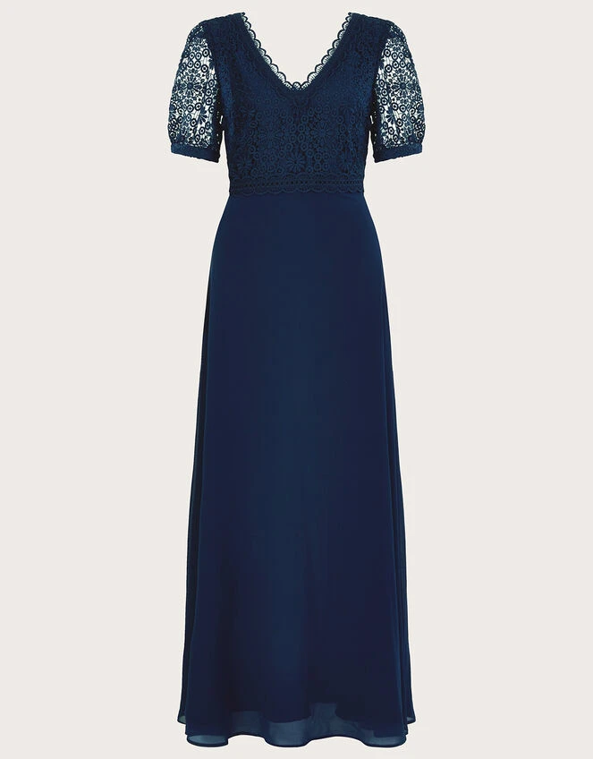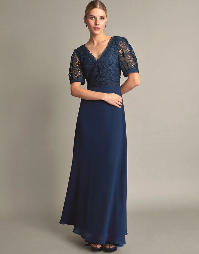 Lilibet boasts a lace bodice with puff sleeves for a delicate touch. She cinches in at the empire line and falls into a flowing maxi-length skirt that we think is just perfect for events throughout the year. Fastens on the reverse with a zipper.