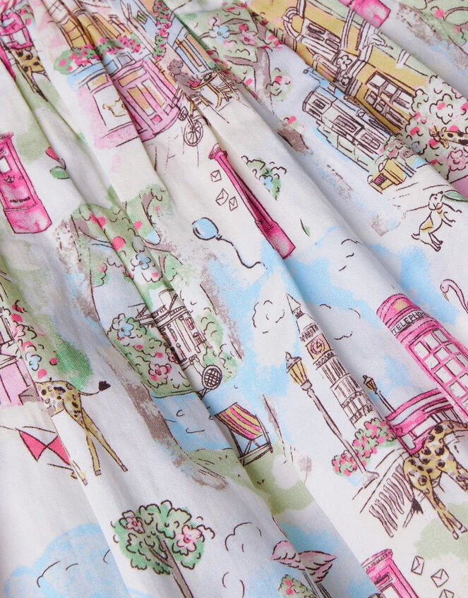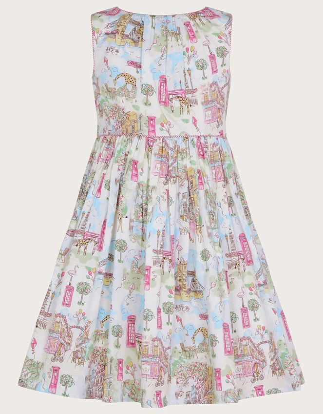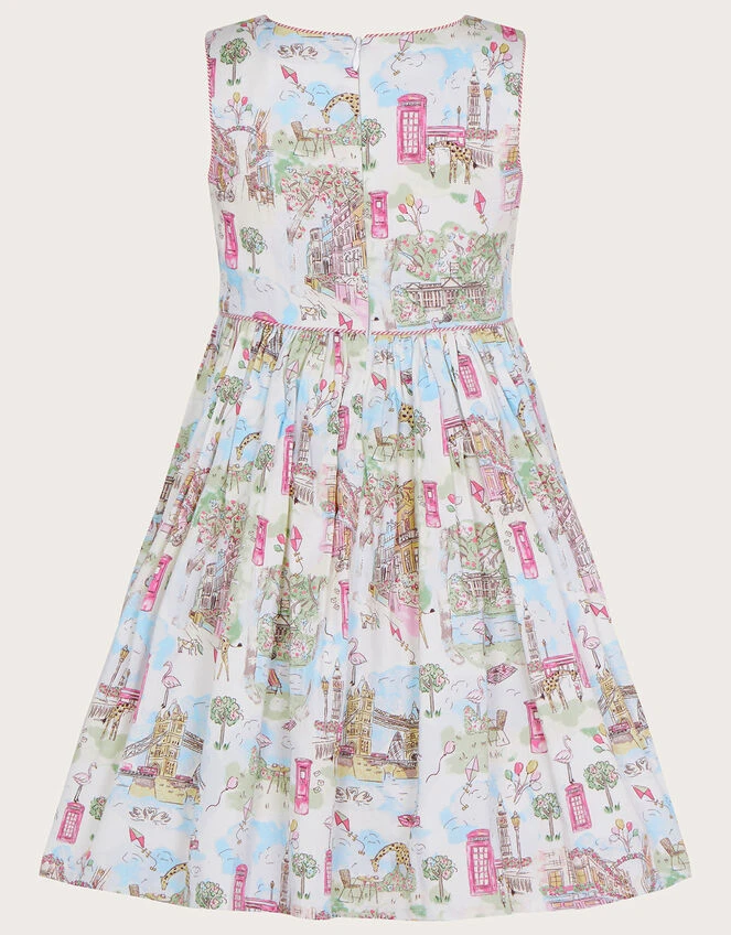 Dress them up for sunny Sunday barbeques in this pretty dress, featuring an illustrated London print β yes that’s giraffes and flamingos you can see! The sleeveless bodice fastens on the reverse with a zip, providing a snug fit, flaring out at the A-line skirt for a practically perfect finish. Ivory