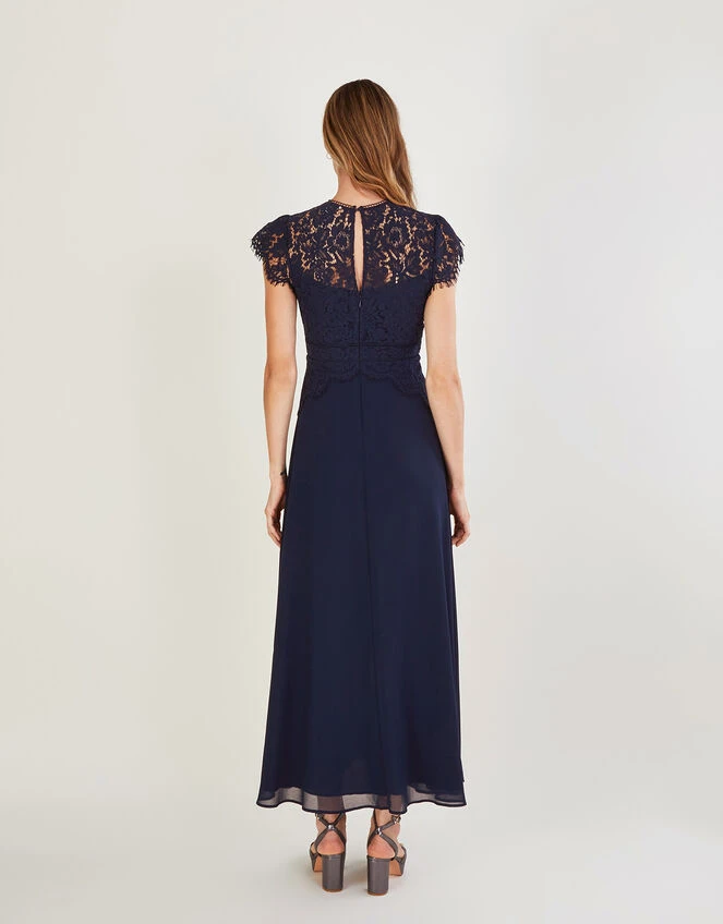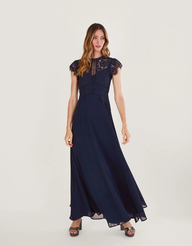 Louise is the perfect event dress: her high neck lace bodice is so chic. She cinches in at the empire line and falls into a flowing maxi-length skirt that’ll swish as you mingle round the party.