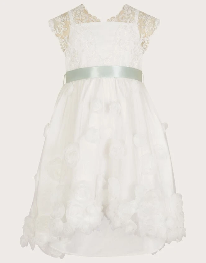 When styling a princess, opt for our mesmerising Margot dress finished with a dipped hemline and lace sleeves. Her elegant silhouette is drenched in cascading roses on the floaty tulle skirt.