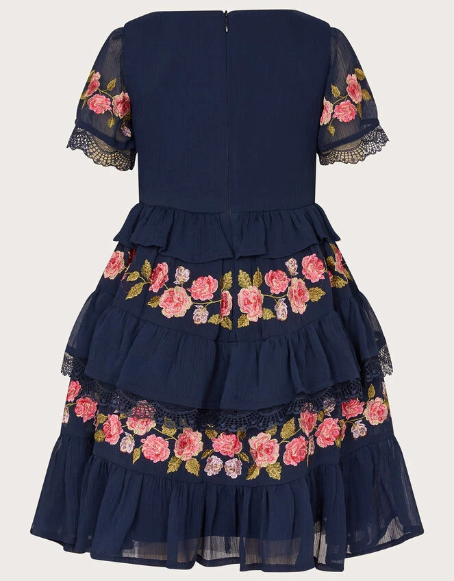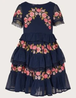 Upcoming celebrations? They’ll be ready to dance from the minute they enter in our Mariella dress. Built with a navy tiered backdrop, we’ve decorated Mariella with floral embroidery and lace trims. Style with heeled sandals and a cropped cardigan to complete the look.