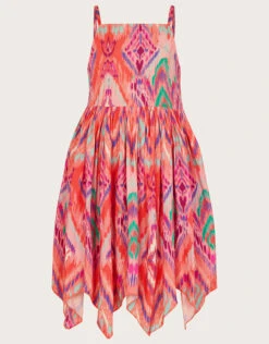 Fun, fiery and perfect for fiestas, this dress is splashed in colour and print for summer fun. It features a hanky hem that brings a fairy-like feel to the look, whilst the square neck and vest straps keep them cool. Finished with a stretchy shirred back panel, it provides flexibility to help find the perfect fit whilst they play.
