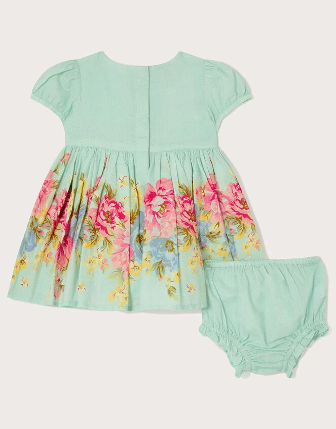 Woven in lightweight jacquard and doused in vintage florals, this two piece is the prettiest choice for daytime. It features an a-line dress with a bow to the waist and slightly puff sleeves, with matching briefs to style underneath. Fastens on the reverse a popper fastening.