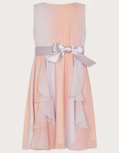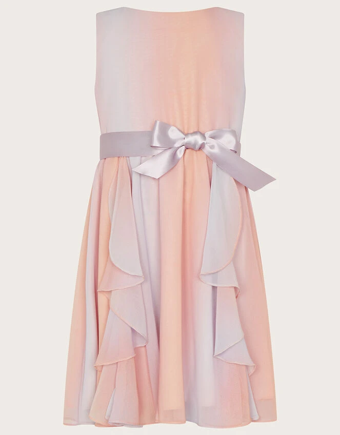 This beautifully bright piece is perfect for spring and summer special occasions. Designed with gentle pleats to the skirt that allow the dress to flow in the breeze, it features waterfall style ruffles that run down the front of the dress for a pretty touch. Finished with a sweet satin bow to the waist.