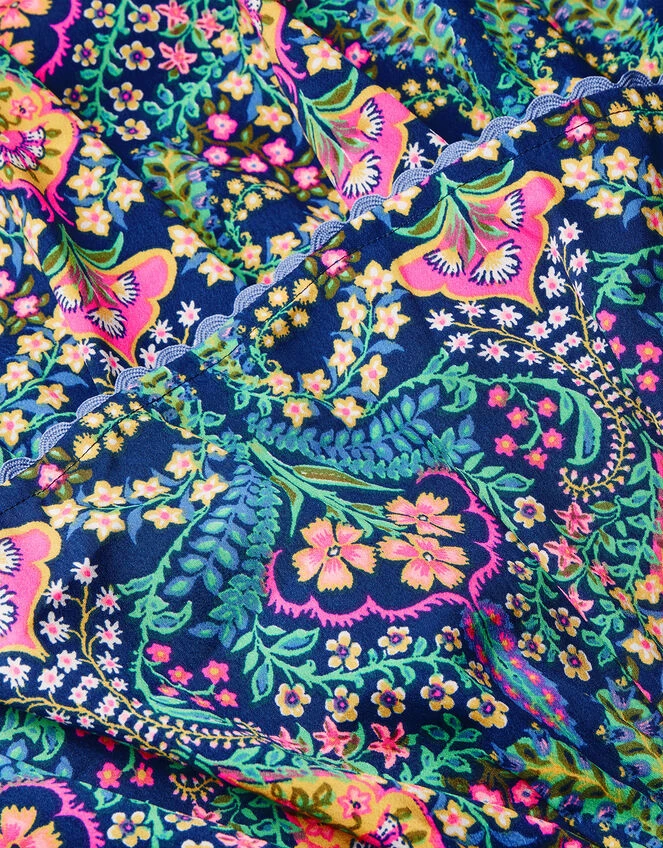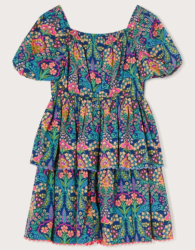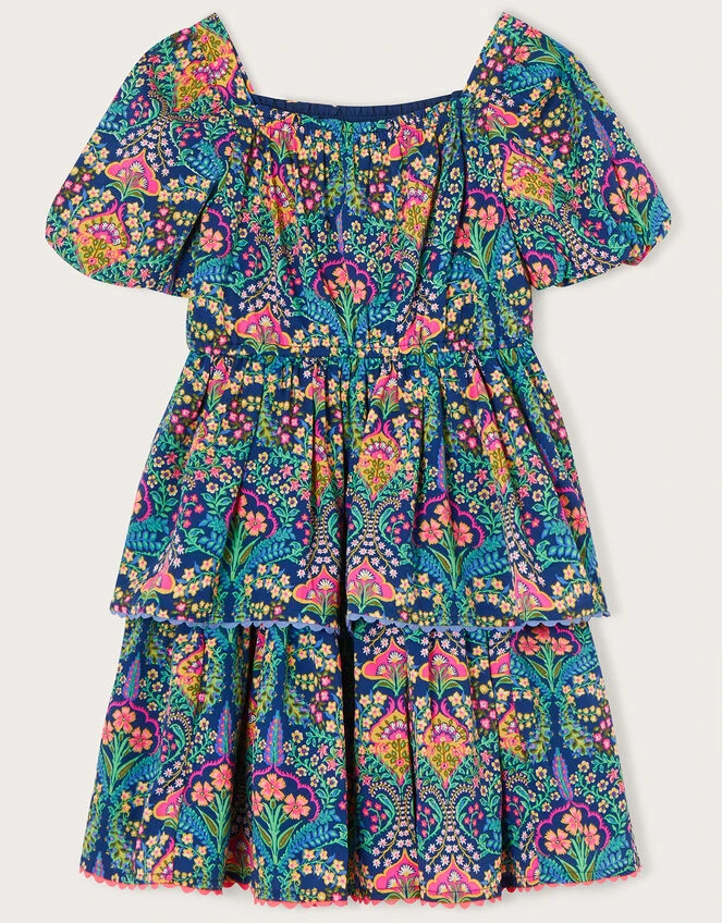 Pretty paisleys pop on this dress, featuring vibrant tones and sweet scallop detailing to the tiered skirt. The square neckline and puff sleeves add a pretty touch, ready for summer garden parties and family barbeques.