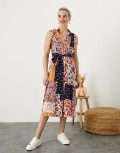 Summer is made for prints, and this is the perfect dress for it. Featuring mixed patchwork and finished with a flattering tie-waist belt, this piece will brighten up the office on rainy days.