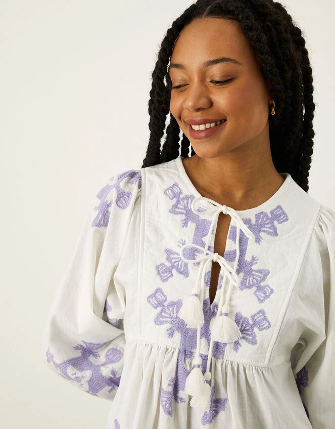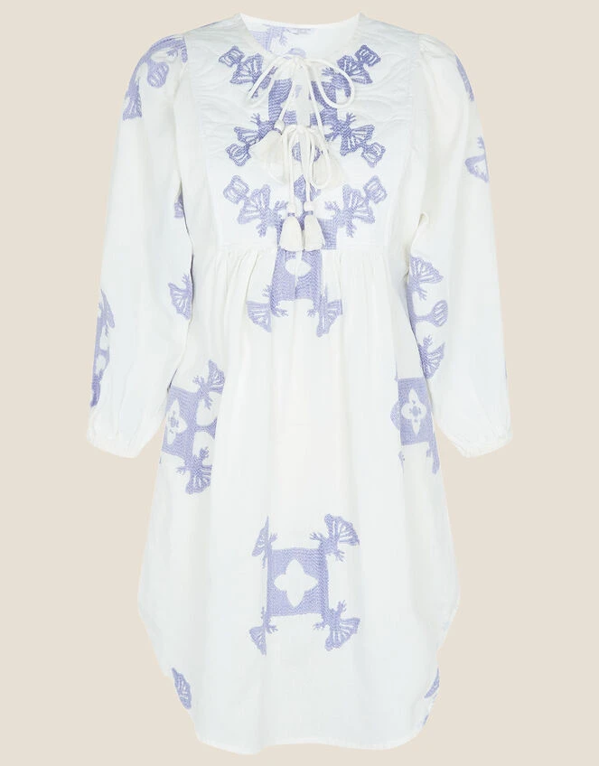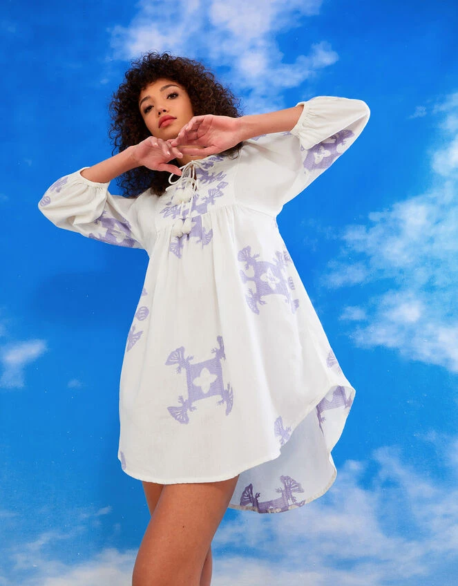 A piece appropriate for not only the suitcase, this smock dress is an easy piece to slip on when the sun comes out. Designed in a blend with sustainable cotton, the cornflower embroidery and tassel detailing makes for a bohemian piece. Style this piece alongside a floppy hat, platform wedges and a straw tote to take on the beach restaurant.