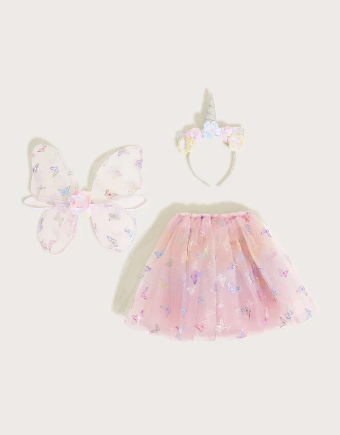 Watch them act out their mystical dreams with this set, featuring a unicorn headband, a rainbow butterfly tutu, and fluttery mesh wings.