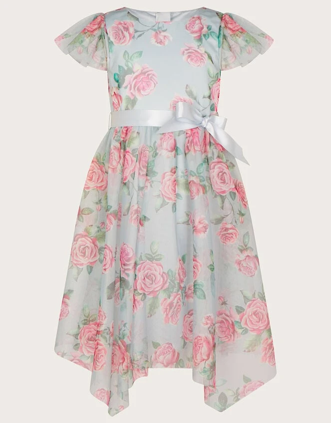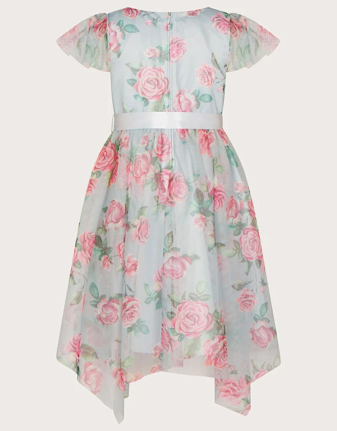 MONSOON Reeta Rose Print Hanky Hem Dress Blue