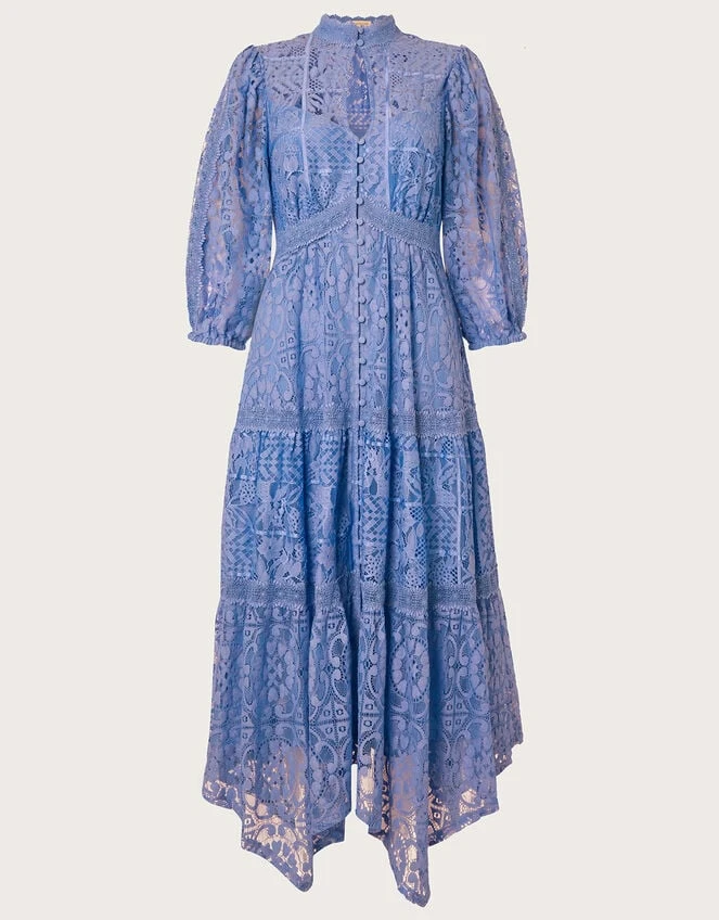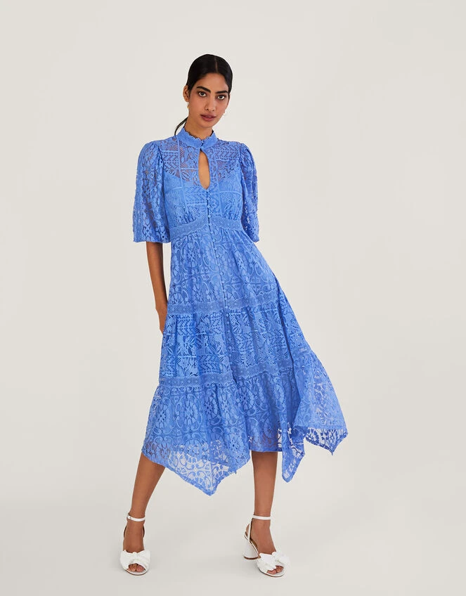 MONSOON Rhea Lace Hanky Hem Shirt Dress Blue