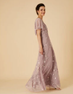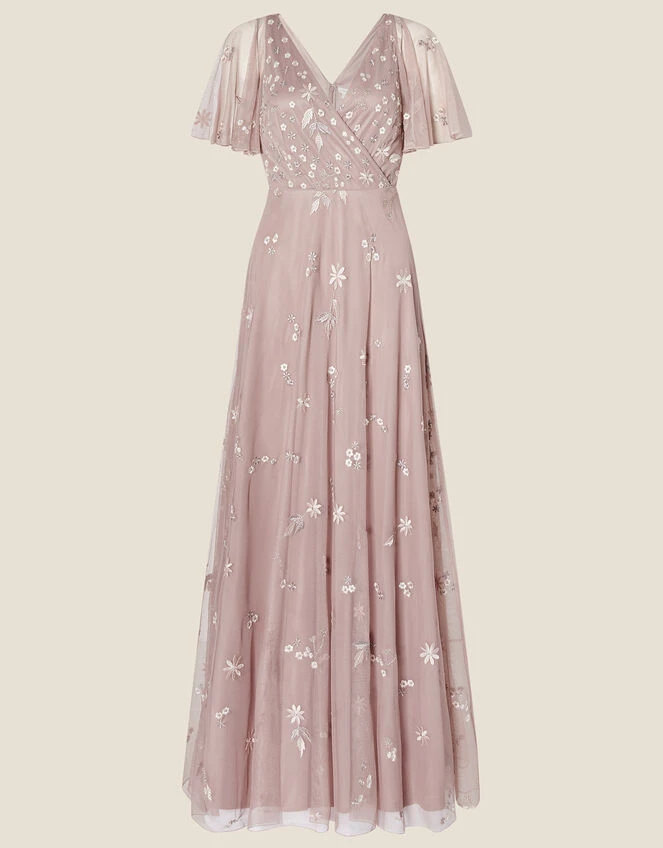 An angelic silhouette with delicate detailing: our Rhonda maxi gown is fashioned in nude pink tulle with botanical embroidery throughout the full length. Style it with strappy kitten heels and a clutch for that special occasion.