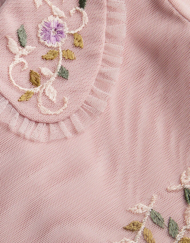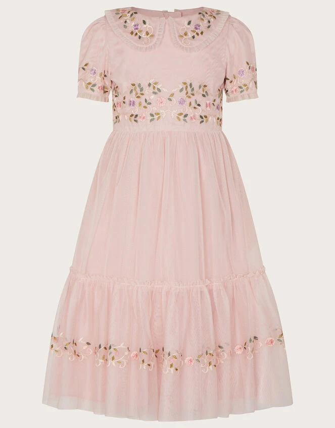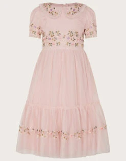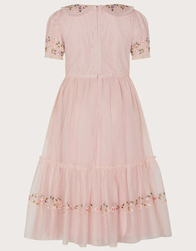 MONSOON Rose Embroidered Collar Tulle Dress Pink