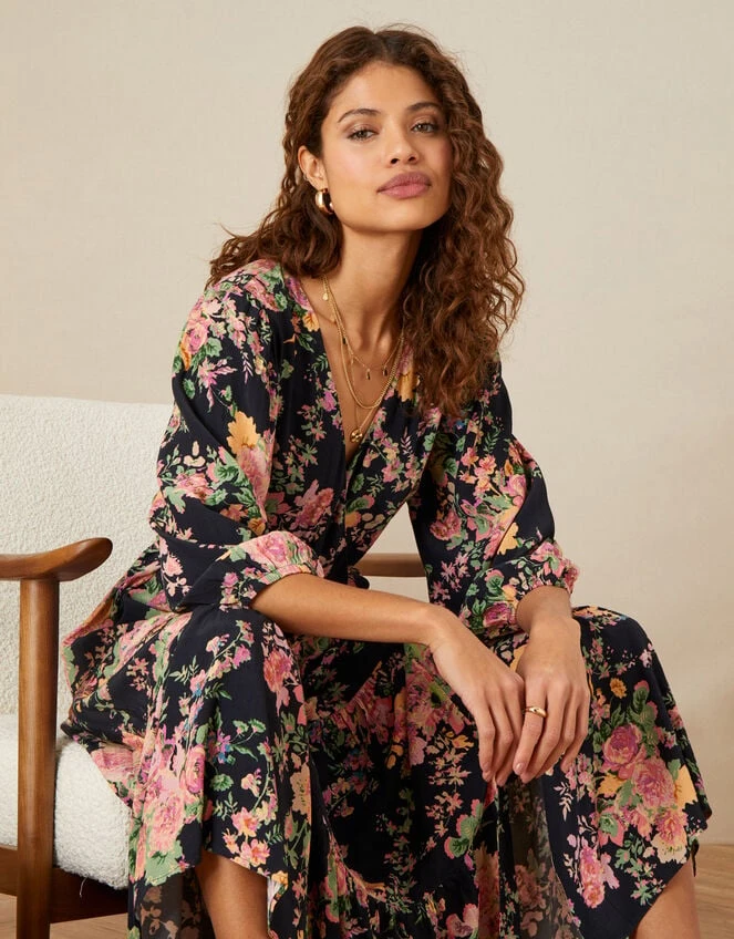 Bursting blooms adorn our Rosemary dress, with a belted waistline and tiered midi length that works together to create her flattering silhouette. Style her with heeled boots for the office, or with strappy heels for dinner and drinks.