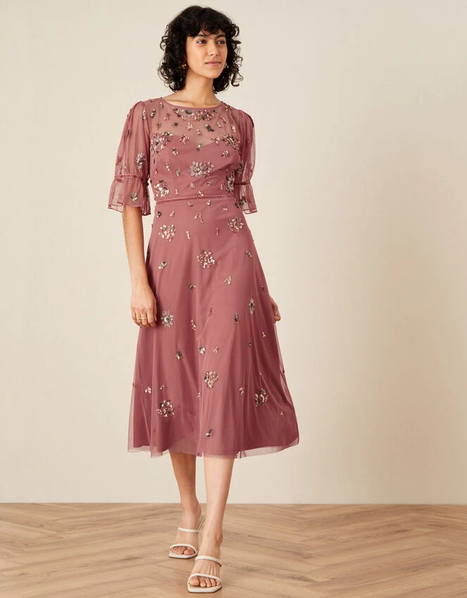 MONSOON Roxanne Embellished Midi Dress Pink