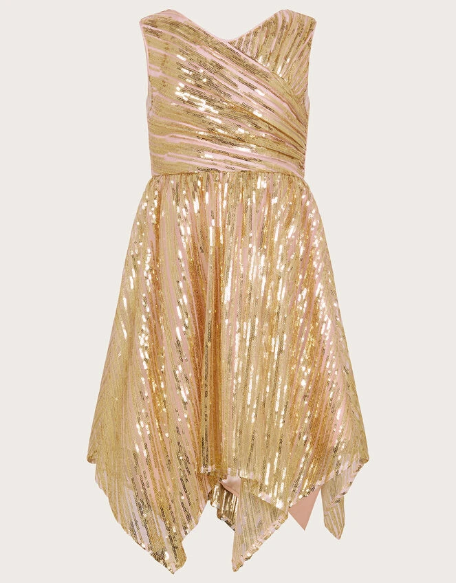 Doused in lashings of sequins your little one will be the life of the party in this dress. It’s designed with a comfortable wrap silhouette, with a hanky hem skirt that will sparkle as they twirl around the dancefloor. Pink