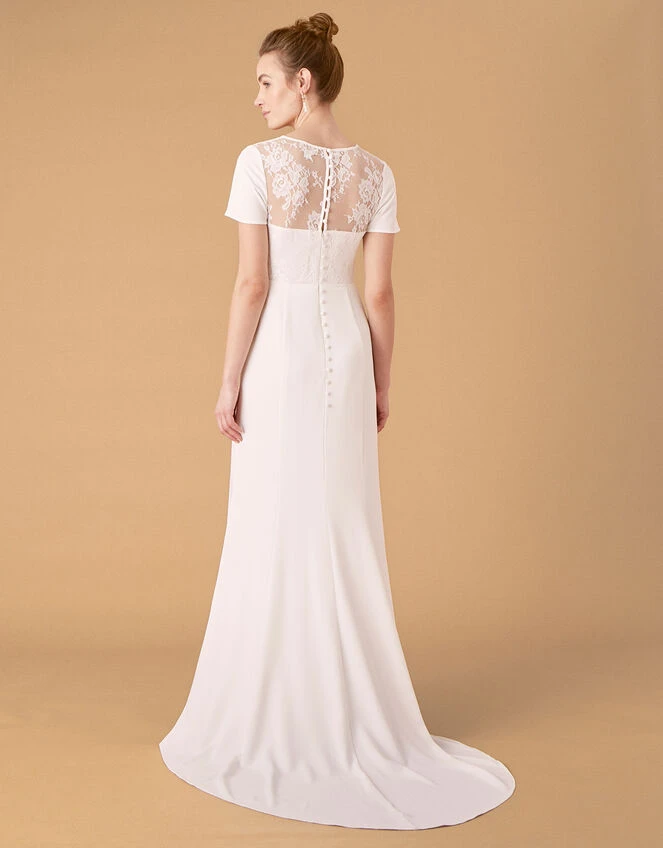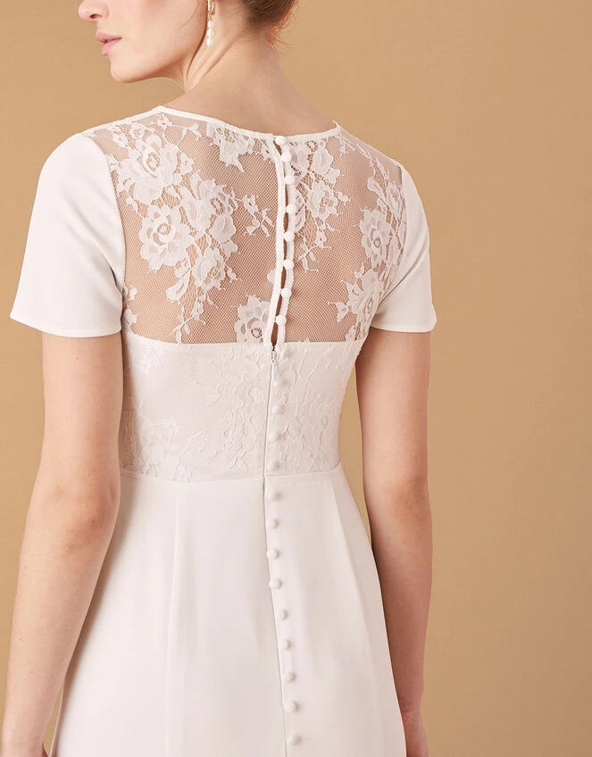 MONSOON Shauna Crepe And Lace Bridal Dress Ivory