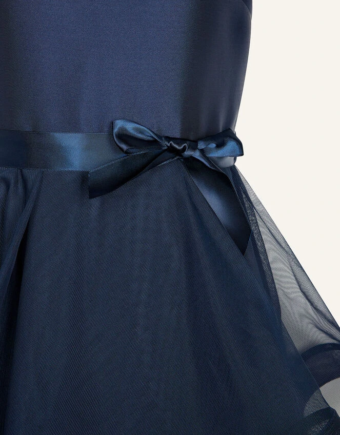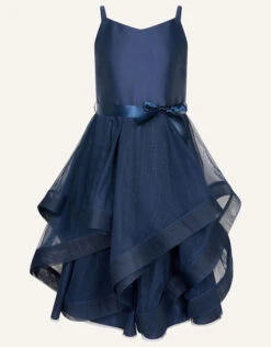Perfect for your dancing diva, Sienna features a beautifully bouncy ruffle skirt that will move around with your little one as they take to the dancefloor. The structured bodice features a concealed zip, finished with a pretty satin bow to the waist. Blue