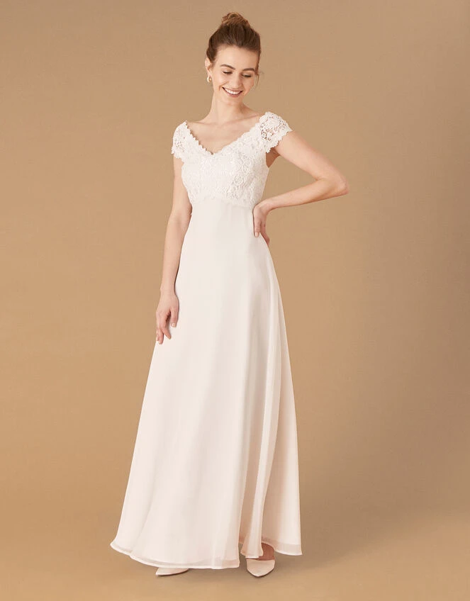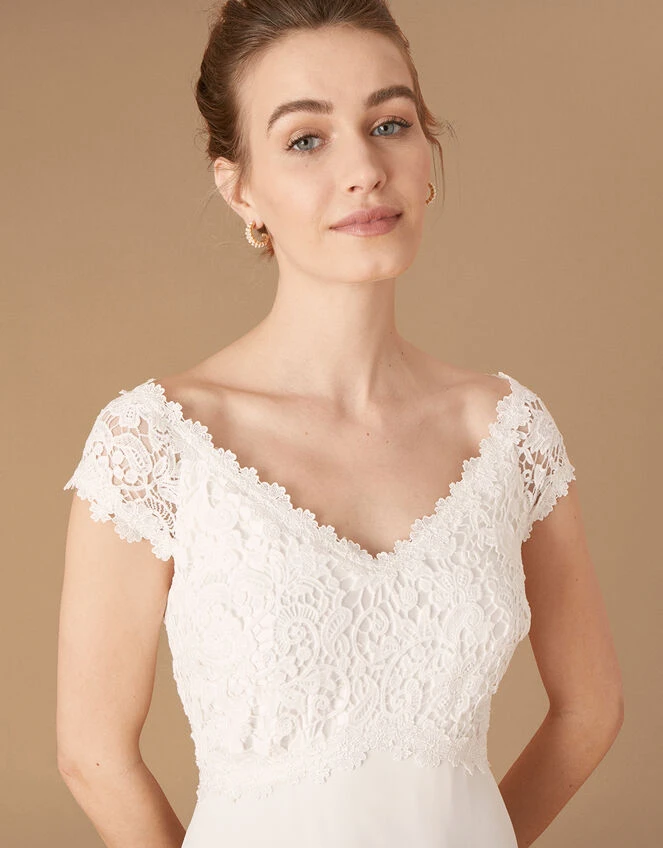 MONSOON Sloane Lace Bodice Bardot Bridal Dress Ivory