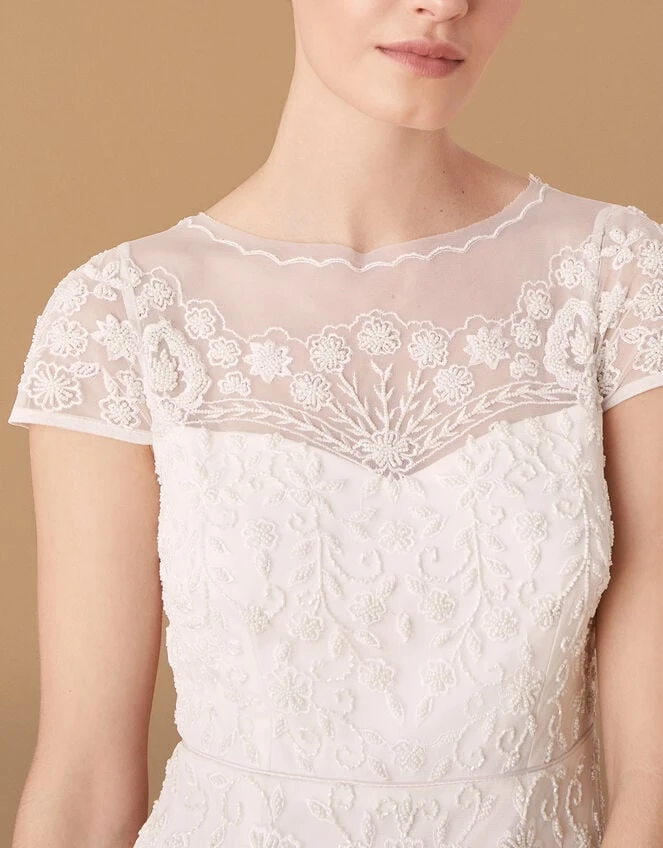 MONSOON Sophie Beaded Floral Bridal Dress Ivory