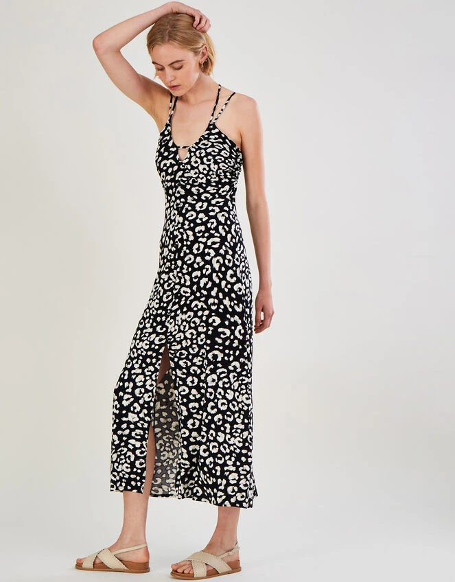 Al fresco dinner date coming up? This animal print dress offers enough detail and comfort to keep you looking and feeling fabulous all night long. It features double shoulder straps with cross detailing to the back, falling into a midi-length skirt with a slit up the front to catch the balmy breeze. Multi
