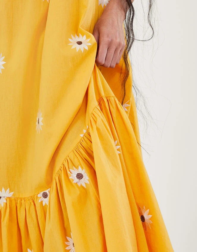 Cast in an exceptionally sunny yellow hue, this dress was made for alfresco lunches and glasses of fizz in the garden. The high halter neckline is lined with pretty ruffles, with flattering wide straps and embroidered sunflowers throughout the piece.