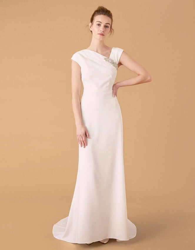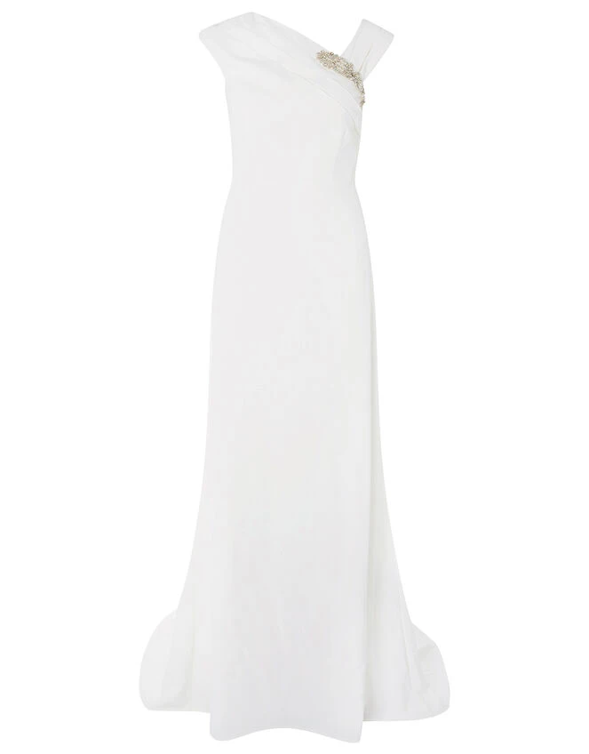 MONSOON Tess Embellished Brooch Bridal Dress Ivory