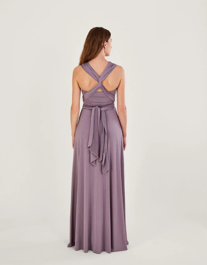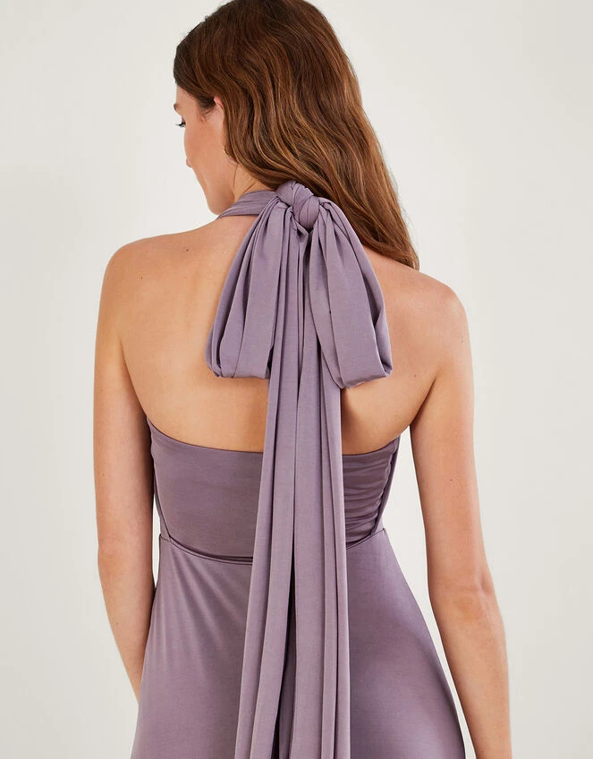 Thea: a smooth, silky-feel multiway dress that can be tied and twisted in 15 beautiful styles, offering a versatile look to suit every member of the bridal party. Her soft pleats make for a flattering finish and it has two long straps for the bodice, with a matching bandeau to be worn underneath. The gown comes complete with clear instructions for all the ways to tie it, and the hem can be altered easily by a seamstress for the perfect length.