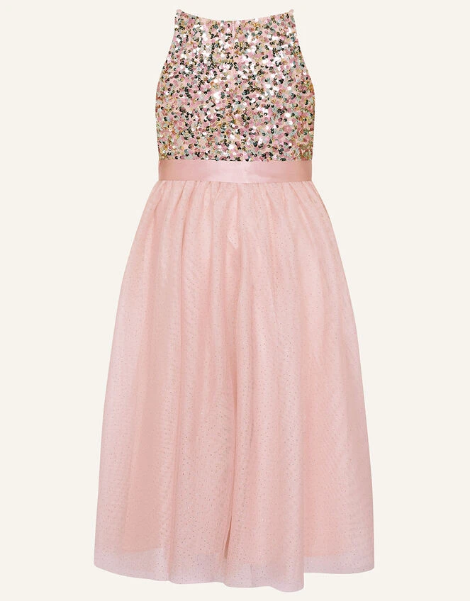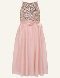 Get ready to party with this Truth prom-style dress. She features a glam sequin bodice and gently pleated flowy skirt with sparkly overlay. Pink