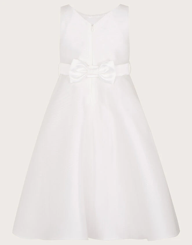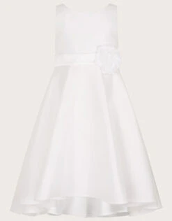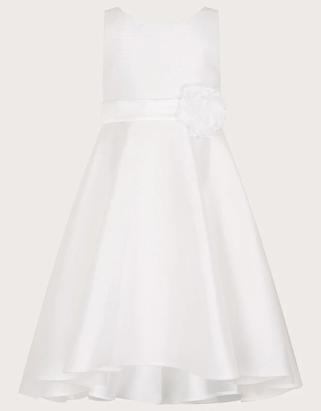 Perfect for weddings and christenings, this dress is created with a simple silhouette and classic ivory casting. The skirt features a high low hemline and the back fastens with a concealed zip. Fully lined.