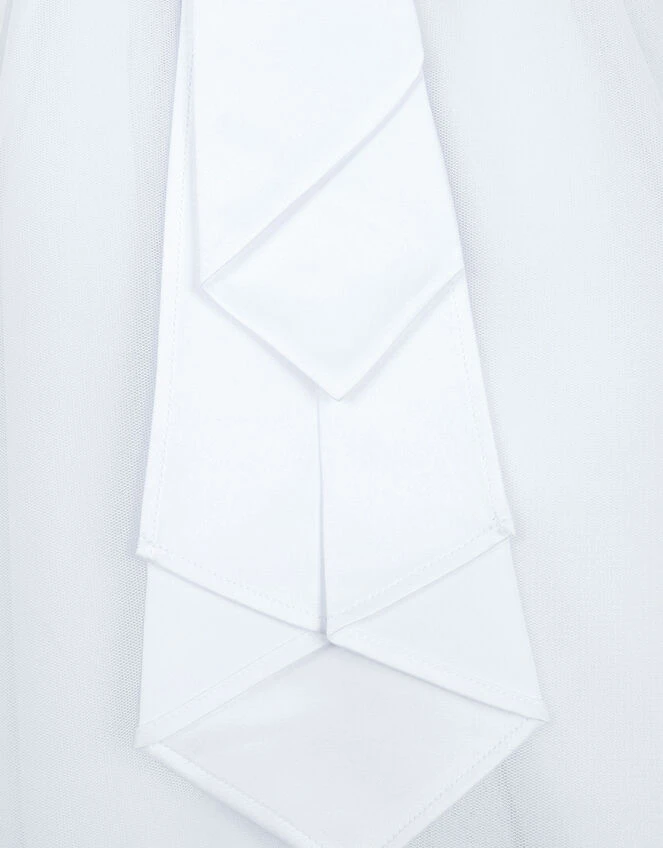 Ready to look the part, this enchanting communion dress will melt hearts. Featuring an exaggerated bow detailing to the back, this dress offers a round neck, short puff sleeves and a mesh overlay skirt. Pair with matching ballerinas and a floral headband for a polished look. Fastens with a concealed zipper to the back.
