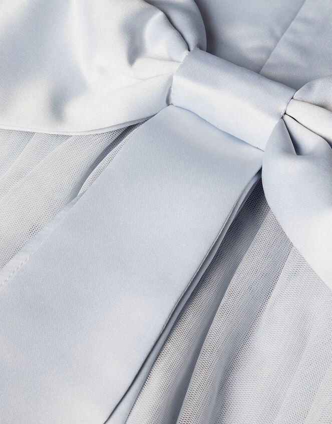 Ready to look the part, this enchanting bridesmaid dress will melt hearts. Featuring an exaggerated bow detailing to the back, this dress offers a round neck, short puff sleeves and a mesh overlay skirt. Style with matching ballerinas and a floral headband for a polished look. Fastens with a concealed zipper to the back.
