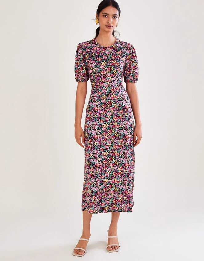 With sandals in the summer and chunky boots in the winter, this midi dress will slip seamlessly into your capsule collection. We adore the vintage florals and the way they complement the simplistic silhouette, with puff sleeves and a round neck to finish. Take a look at the back for the real star of the show – a backless moment with a self tie! Black