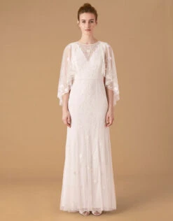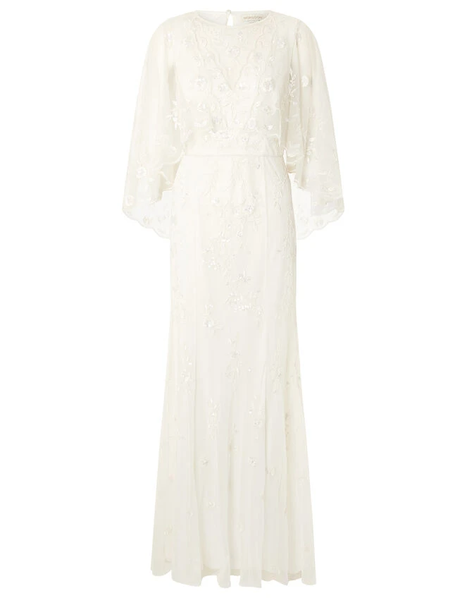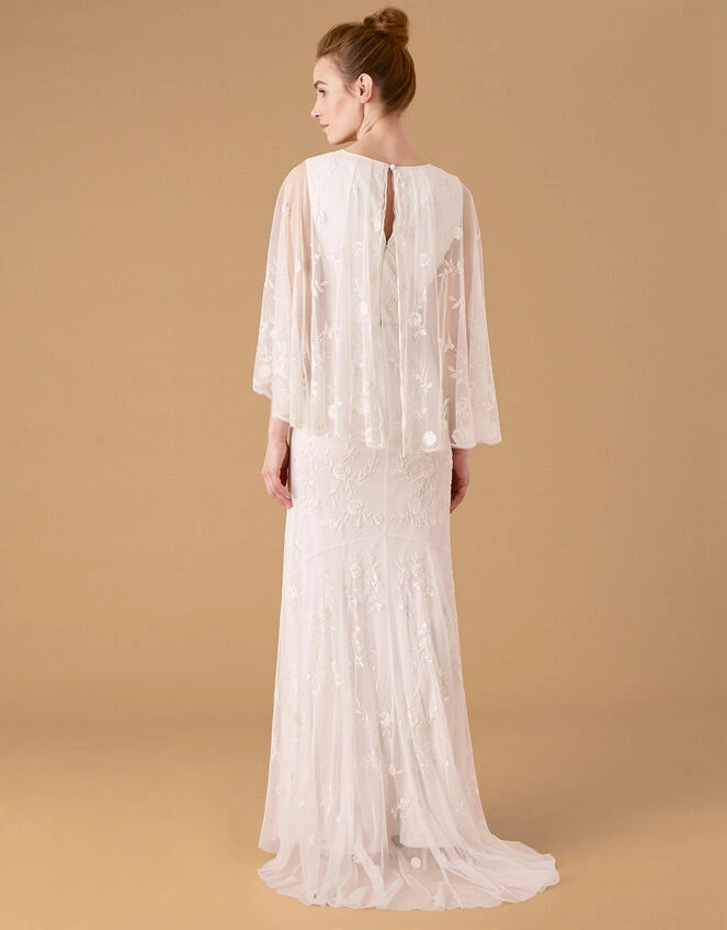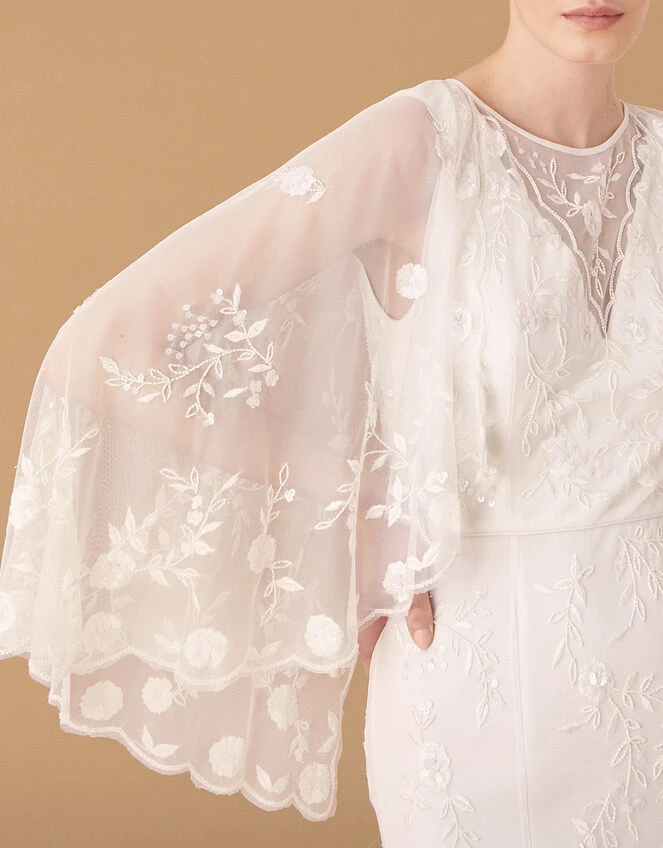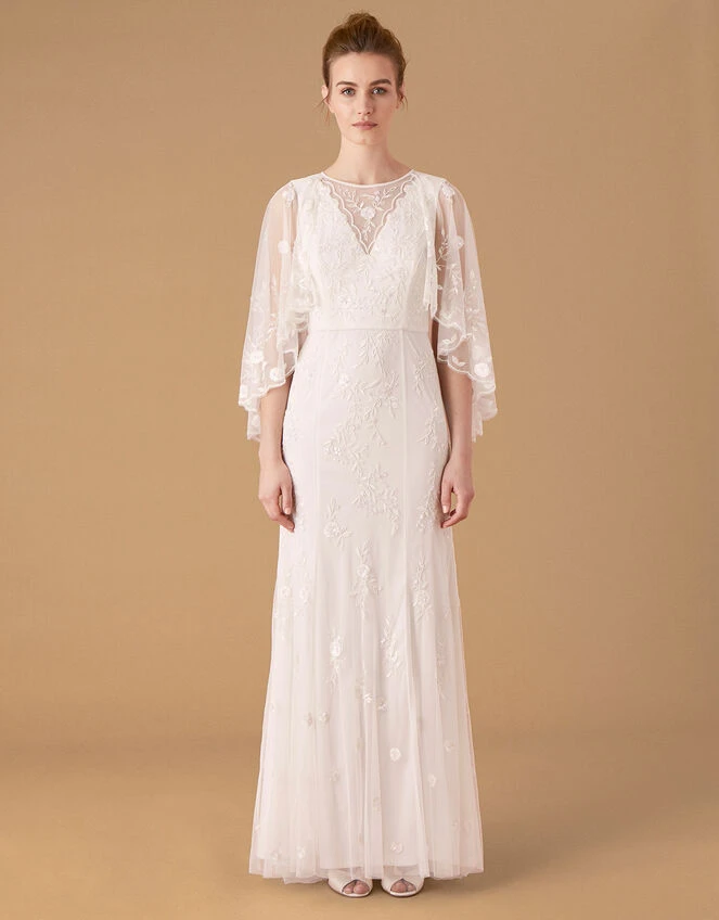 MONSOON Zoey Floral Cape Bridal Dress Ivory