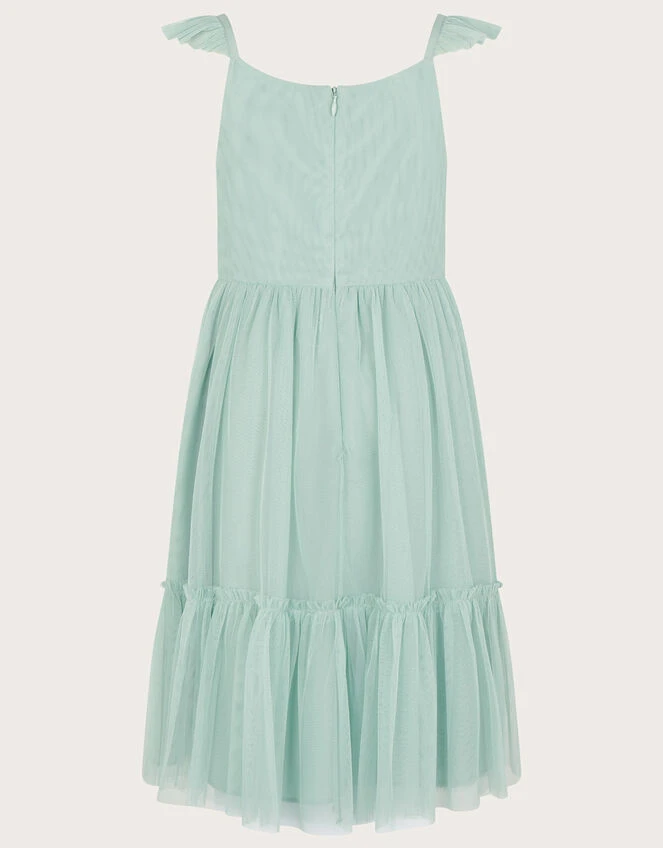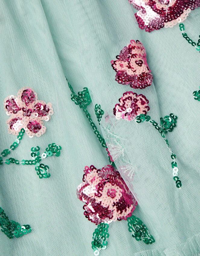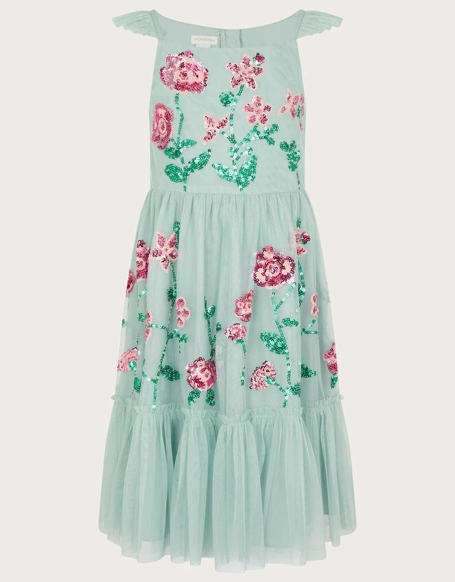 Scattered with a bouquet of sparkling sequin florals, this dress is all they’ll need for summer partying. The bodice boasts pretty ruffle cap sleeves, falling into an enchanting tiered skirt. Fastens on the reverse with a zip closure. Green
