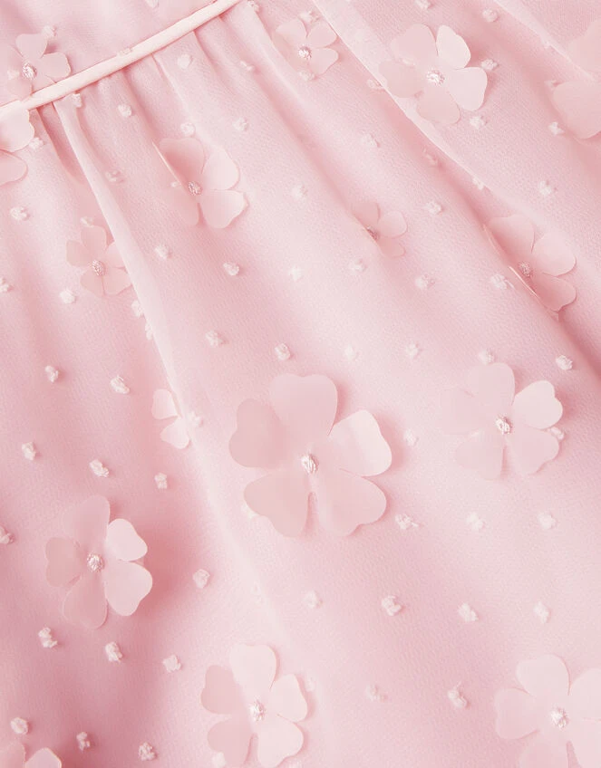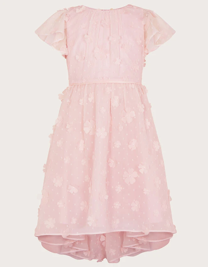 Scattered with blossoming 3D florals, this dress is perfect for special summer occasions. The flutter sleeves with dance in the breeze, along with the floaty skirt and sweet satin skirt with a bow to the back. Secures with a zip fastening on the reverse. Pink